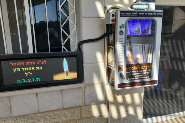 - תלית ארונות עם חוברות סדר אזכרה בבתי עלמין